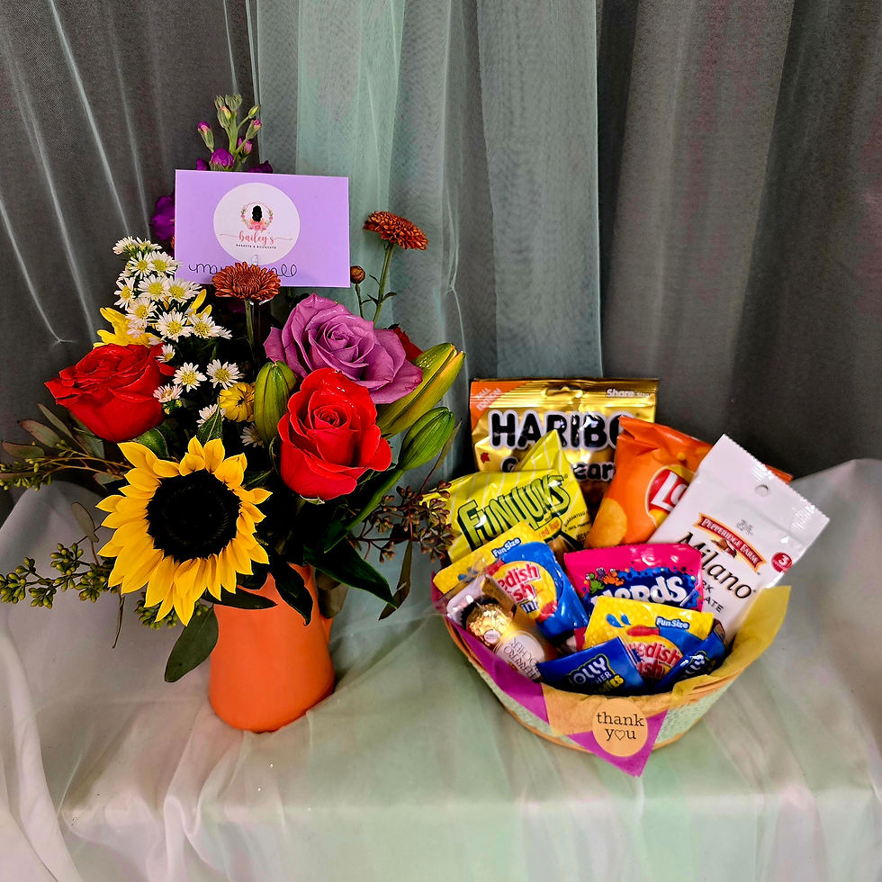 Mini Gift set: Chocolate pretzels, candle, bubble, heart bath bomb, rose petals